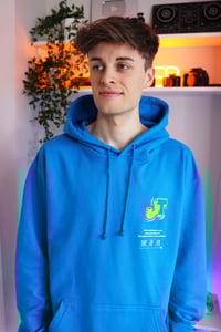 Premium Sapphire Blue Hoodie with Embroidered Yellow "JT" definition